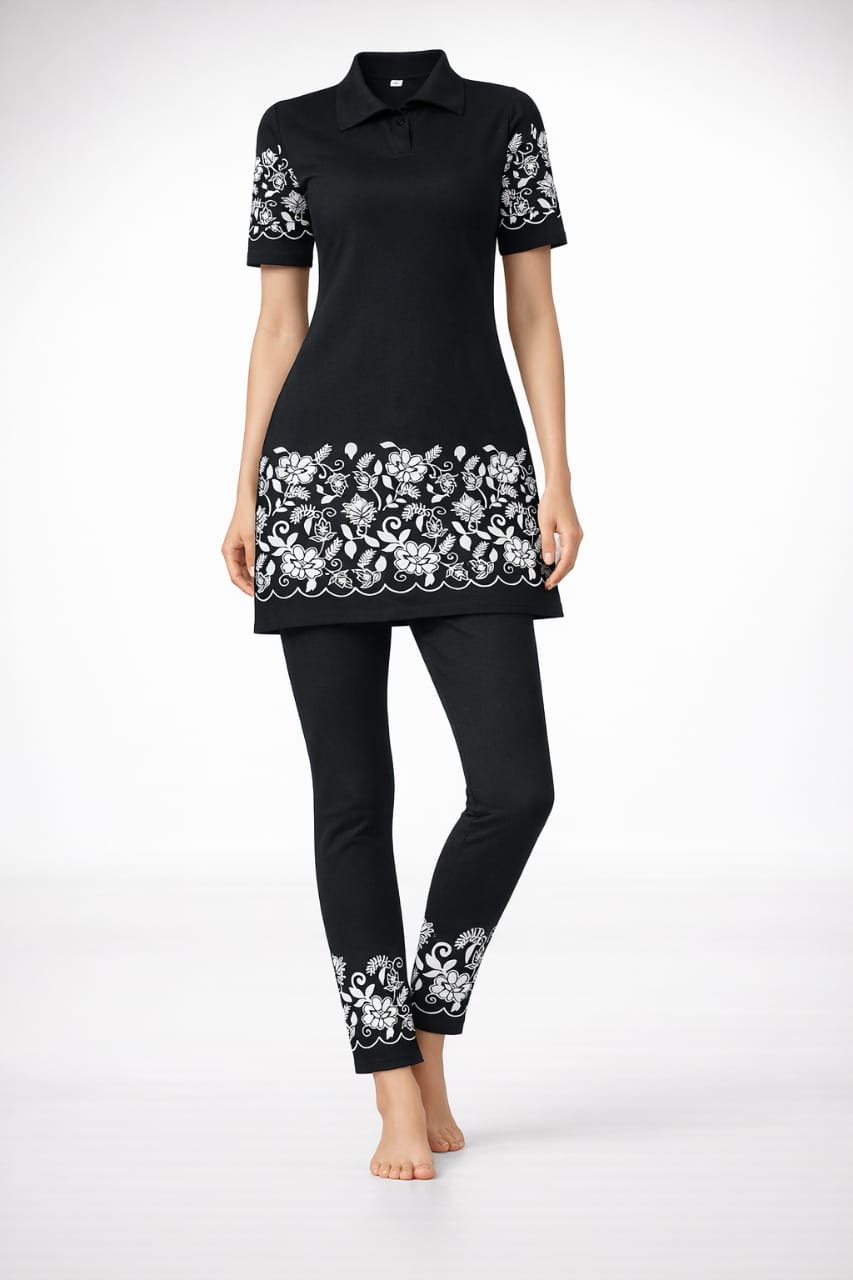 Shop our stunning Black Floral Kurta Pant Set at just ₹699. Made from premium soft fabric with beautiful white floral print. Collar neck design with short sleeves. Perfect for office, casual outings and family functions. Free delivery all over India. This black floral kurta pant set is comfortable, stylish and easy to maintain. Order now and get it delivered within 5-7 working days!